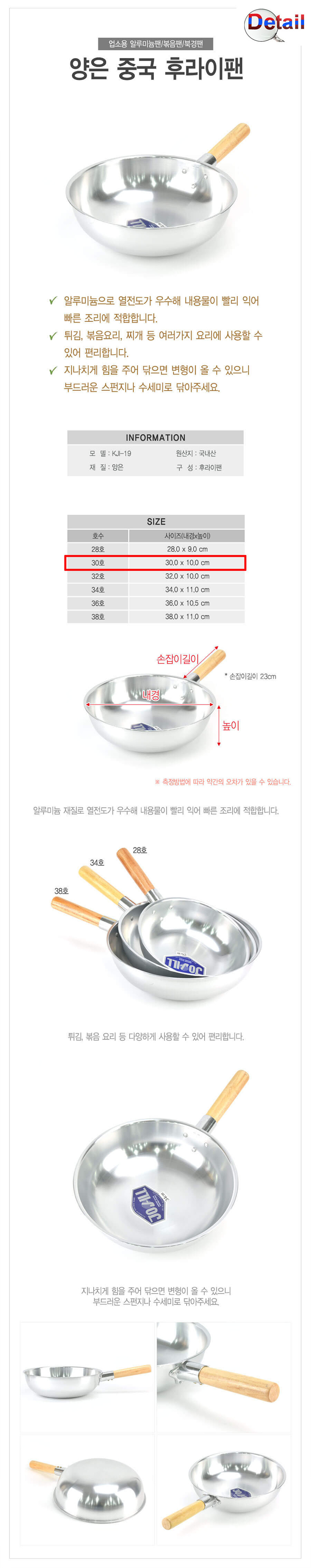양은 중국후라이팬 궁중팬 볶음웍 튀김팬-30호