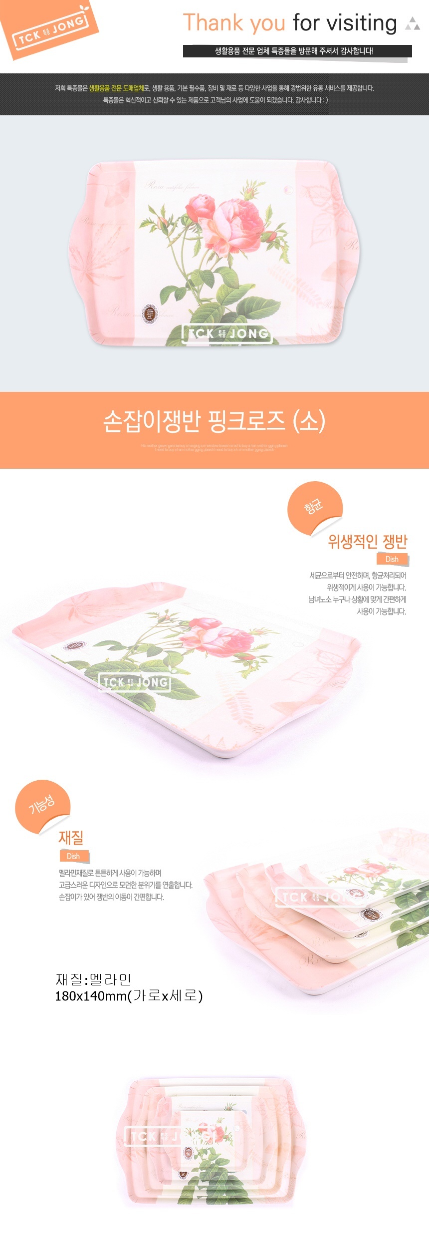 손잡이쟁반핑크로즈 (소) 이미지/