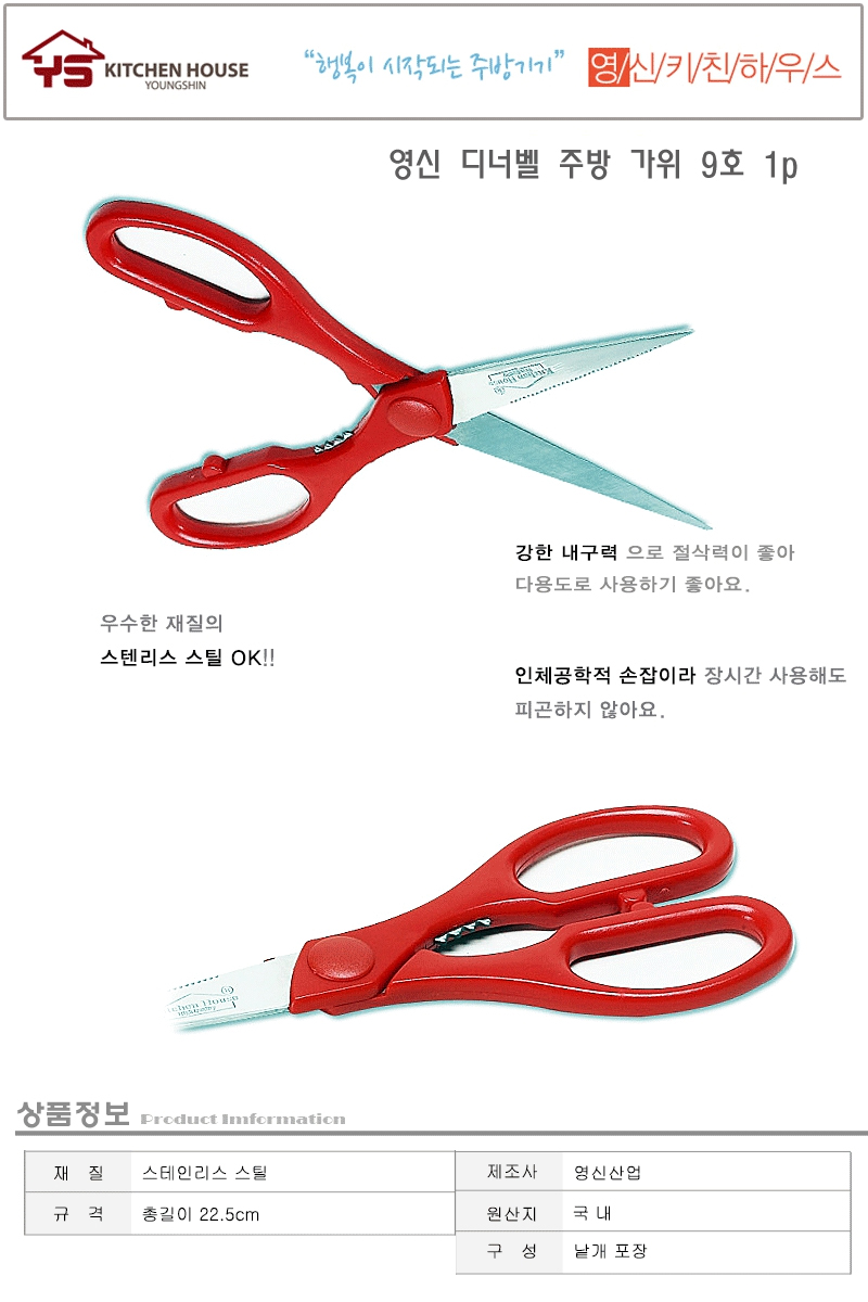 영신 디너벨 주방 가위 9호 1p 고급주방가위 이쁜주방