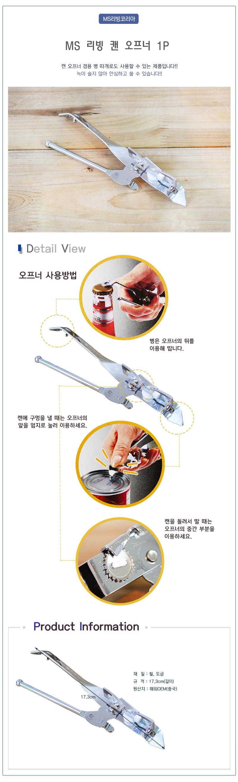 MS 리빙 캔 오프너 1P 병따개 다용도오프너 다용도따 이미지/