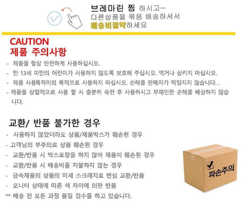 • 다른 제품과 같이 주문할 경우 따로 배송됨을 말씀드립니다.