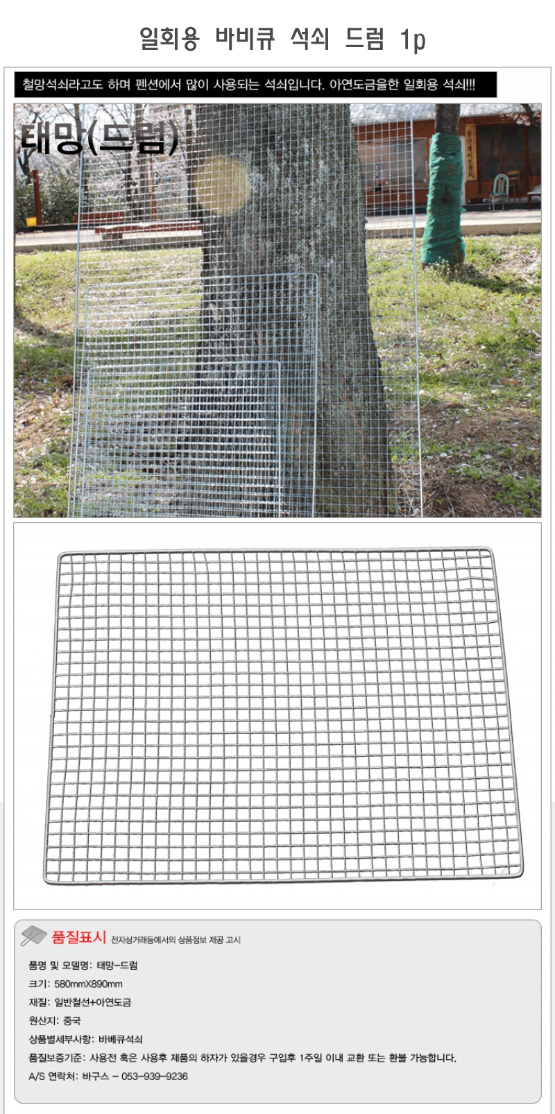 일회용 바베큐 석쇠 드럼 1p 바비큐 구이판 일회용 1
