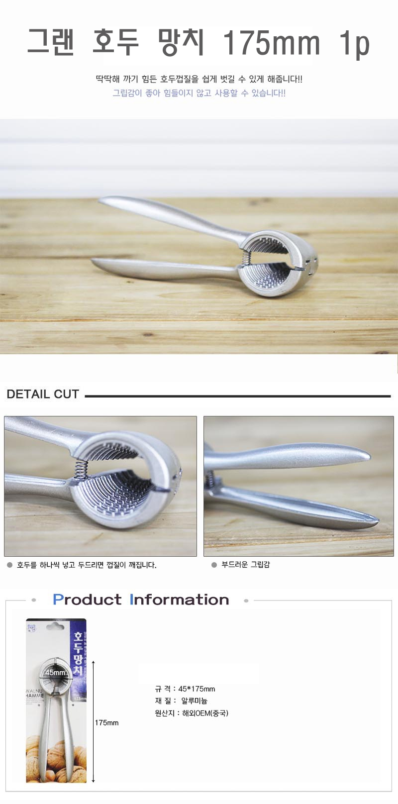 그랜 호두 망치 175mm 1p 호두까기 밤가위 밤칼 은행