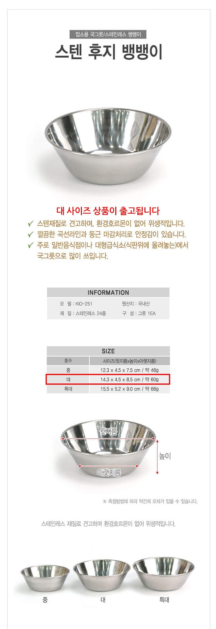 스테인레스 24종 업소용 후지 국그릇 대형 14cm 이미지/