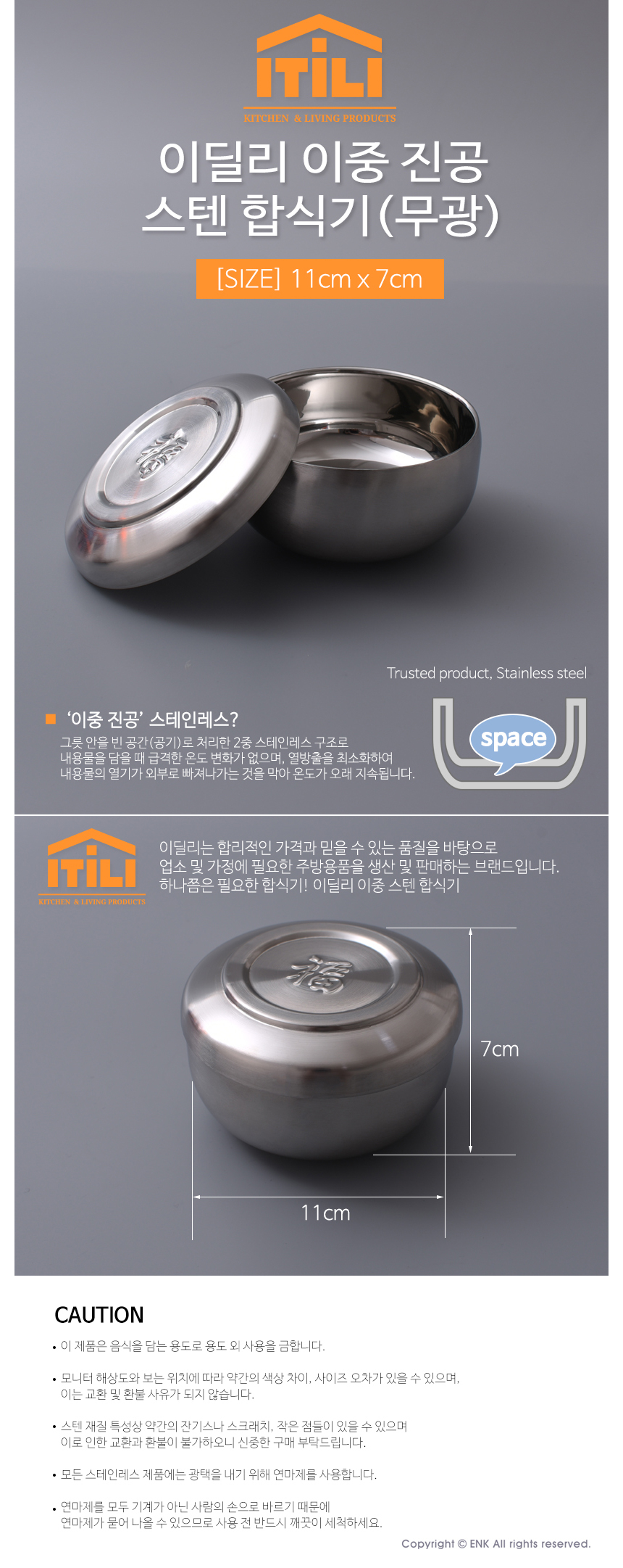 이앤케이 이딜리 이중합 식기 무광 샤팅 밥그릇 공기