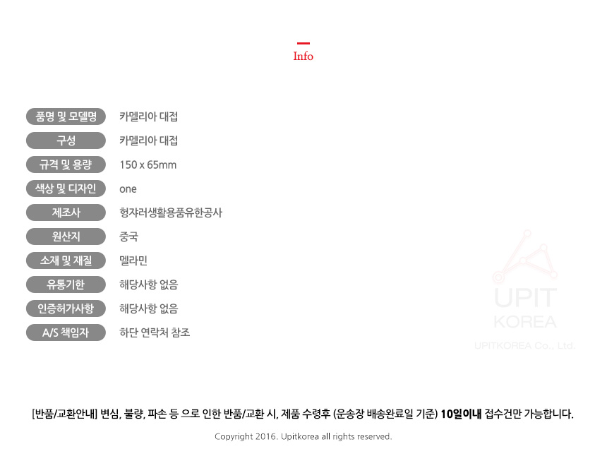 • 초기제품 이상의 경우 동일한 제품으로 1:1 교환원칙, 사용후 제품이상은 A/S를 원칙으로 합니다.