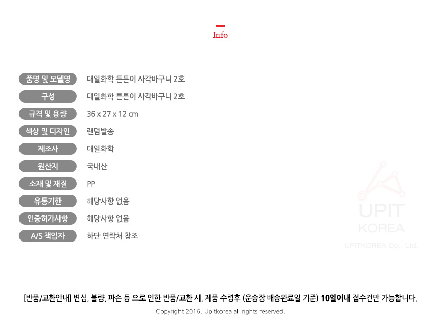 대일화학 튼튼이 사각바구니 2호1703 이미지/