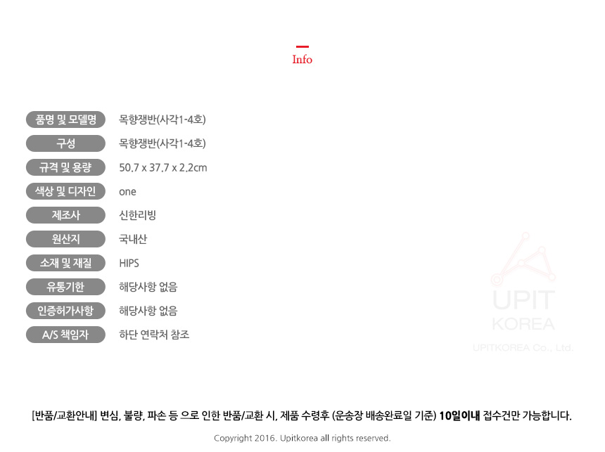• 초기제품 이상의 경우 동일한 제품으로 1:1 교환원칙, 사용후 제품이상은 A/S를 원칙으로 합니다.
