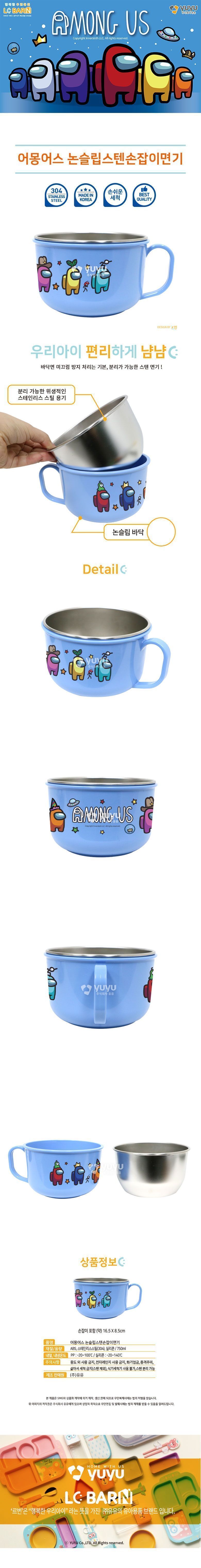 <상품명 : 어몽어스 논슬립 스텐 손잡이 면기 그릇 (750ml)>