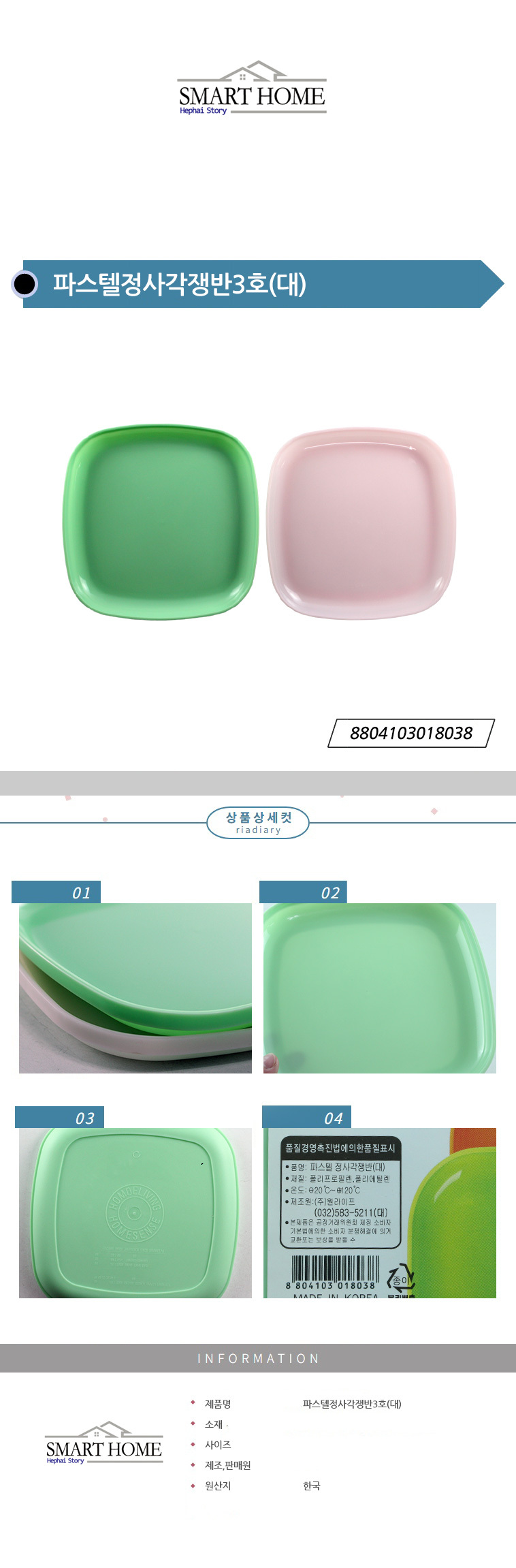파스텔정사각쟁반3호(대)그린