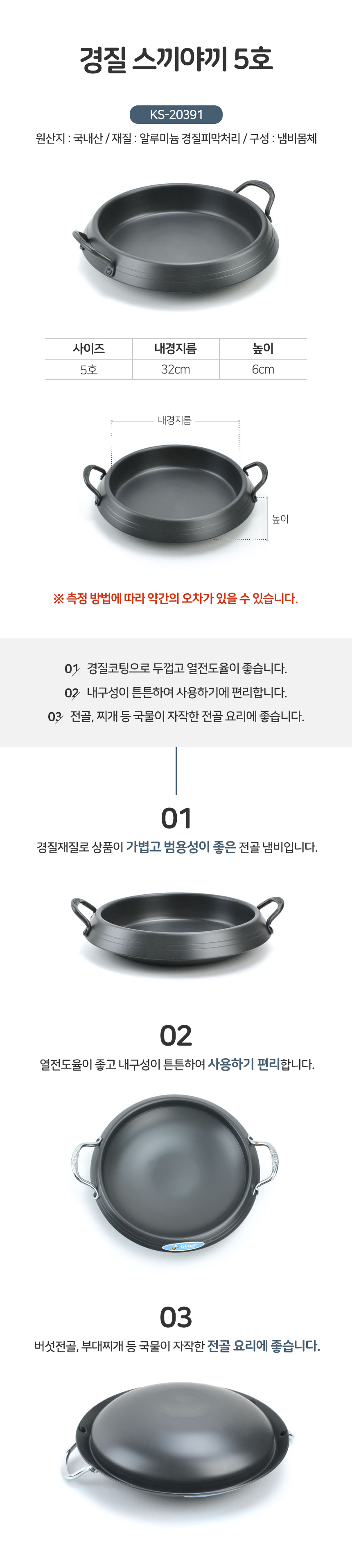 경질 스끼야끼 5호 두꺼운냄비 경질 전골 찌개