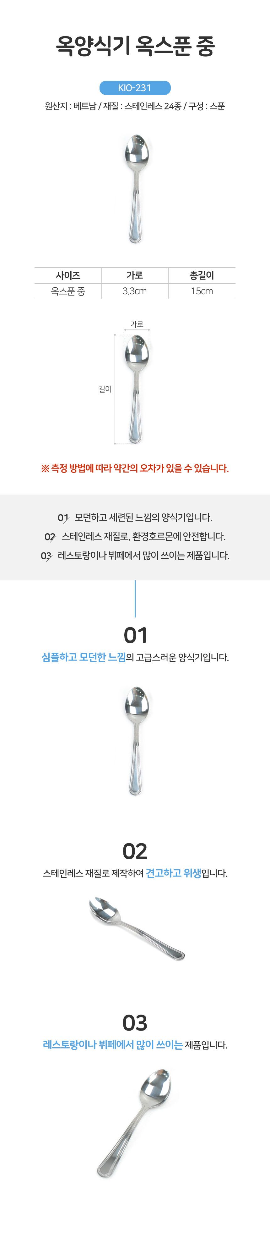 옥양식기 옥스푼 중 부페 세트 스텐 커트러리 주방 이미지/