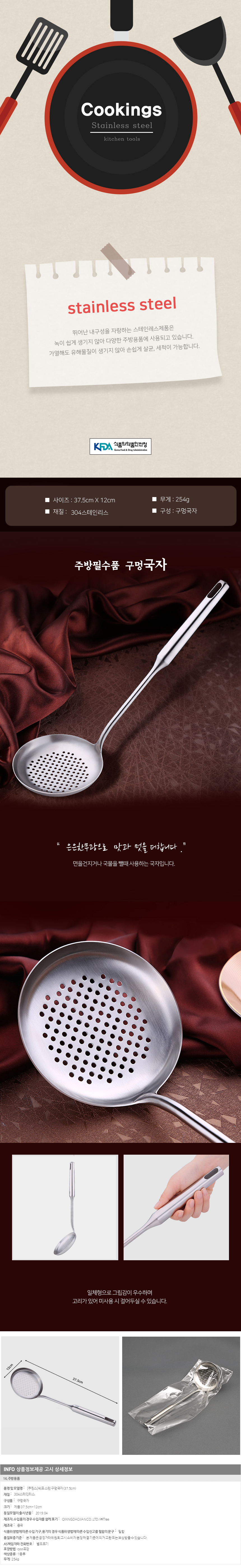 [쿠킹스]쉐프 스텐 구멍국자(37.5cm) 이미지/