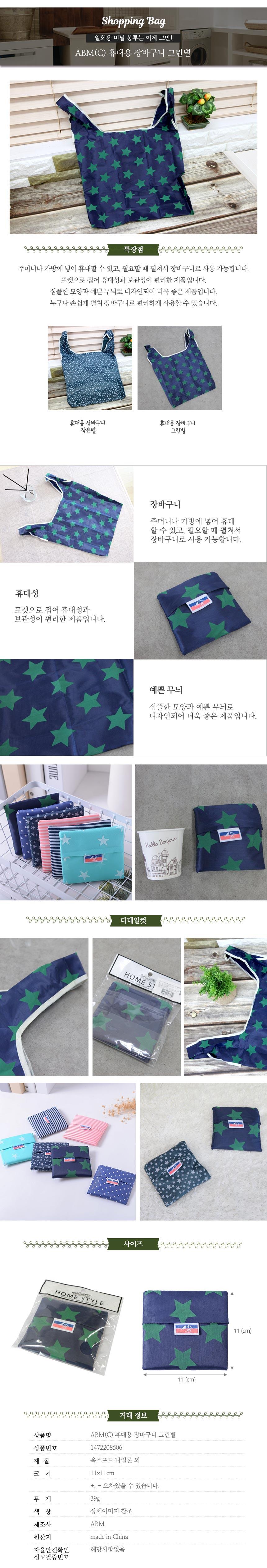 그린별 휴대용시장가방 휴대용 마트가방 장바구니 이미지/