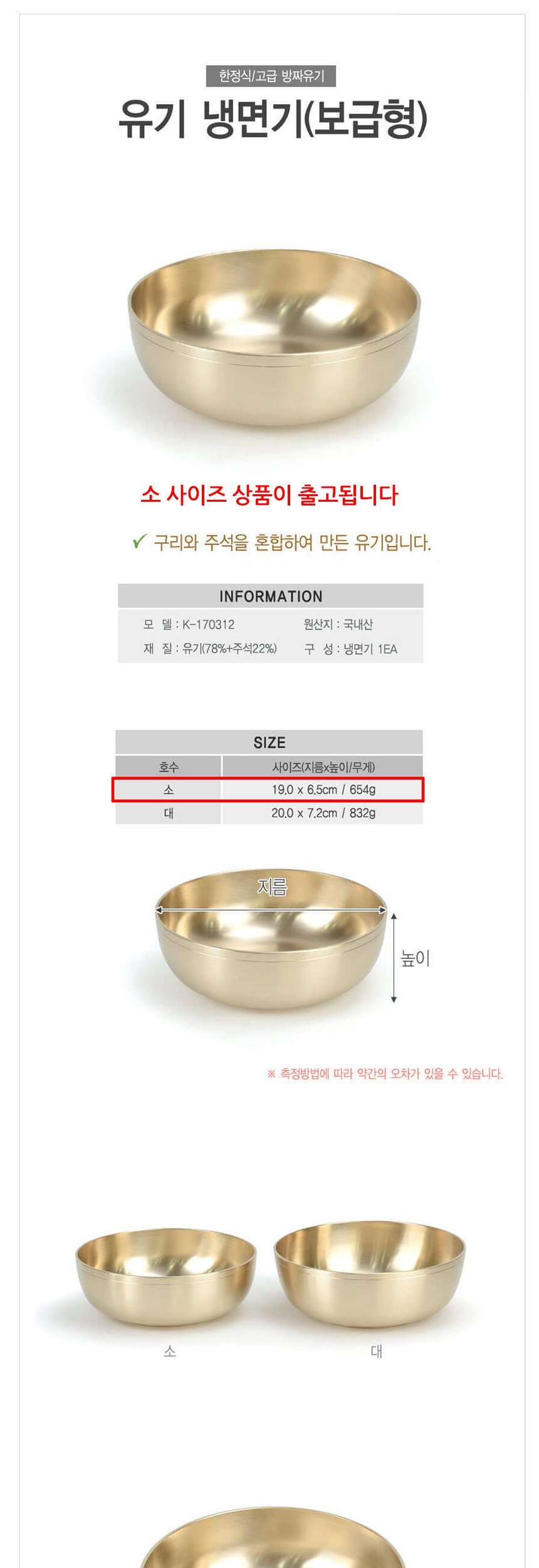 업소용 방짜유기 냉면그릇 소형 19cm 이미지/