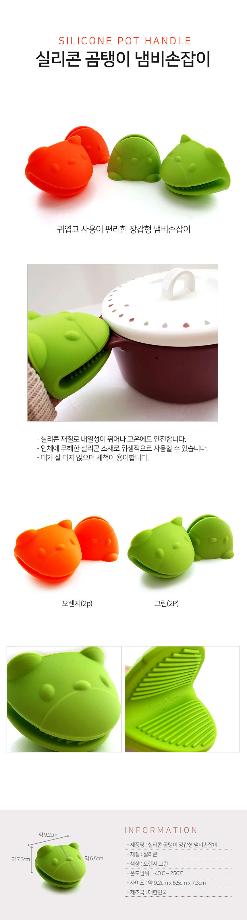 뜨거운 화상 방지 손잡이 냄비 옮기기 실리콘 1세트