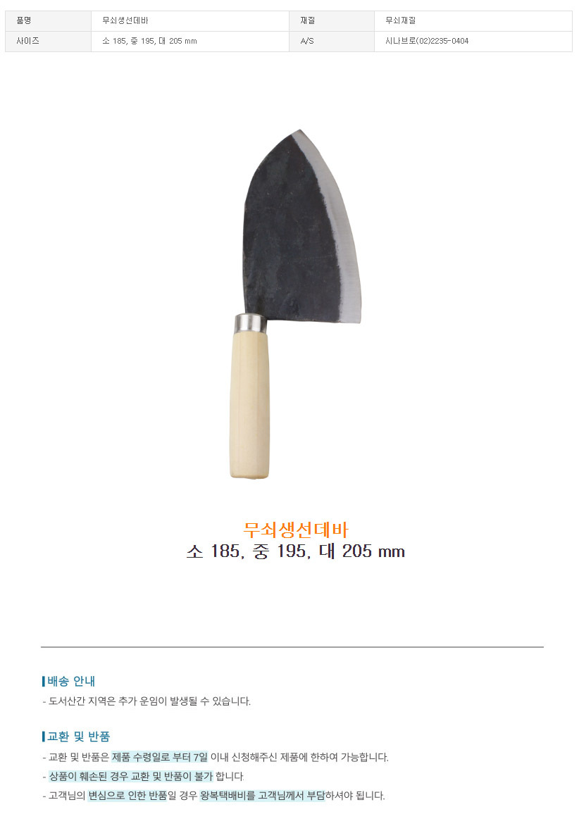 식칼 식도 생선손질 생선데바 무쇠칼 닭손질 3size 이미지/