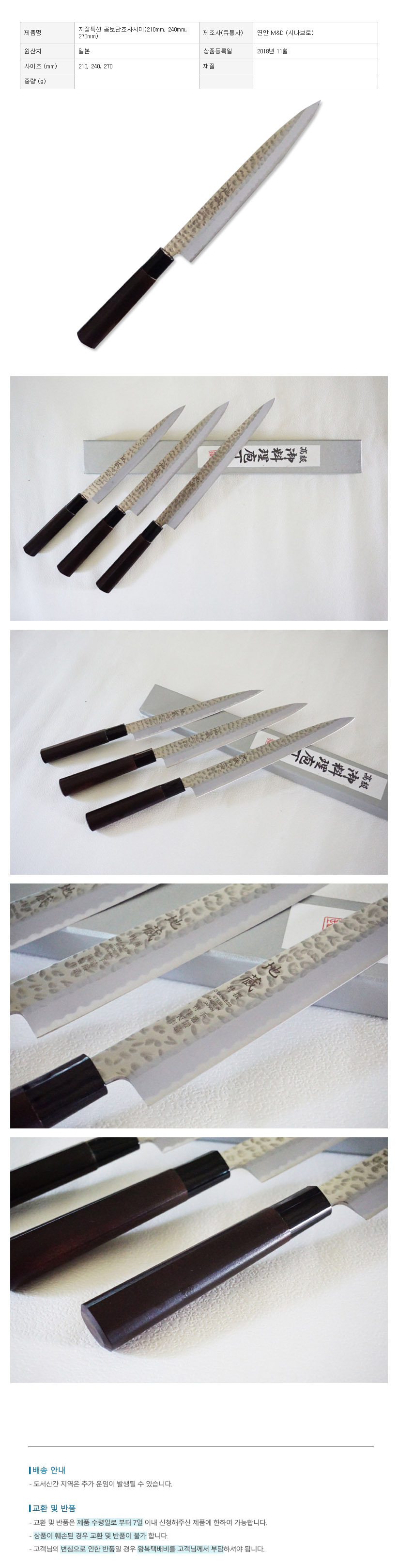 3size 일본산 곰보단조 사시미 일식칼 회칼