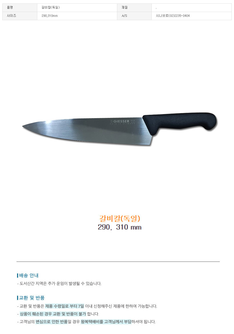 기셀우도 갈비칼 조리용칼 주방칼 2size 독일 식칼