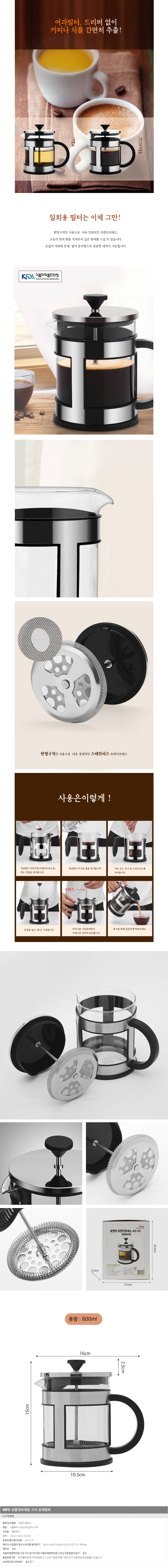 스테인리스 필터 분리형 프렌치 프레스 600ml 이미지/
