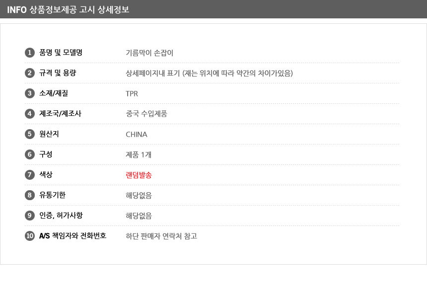 제조자 상품상세설명에 표기