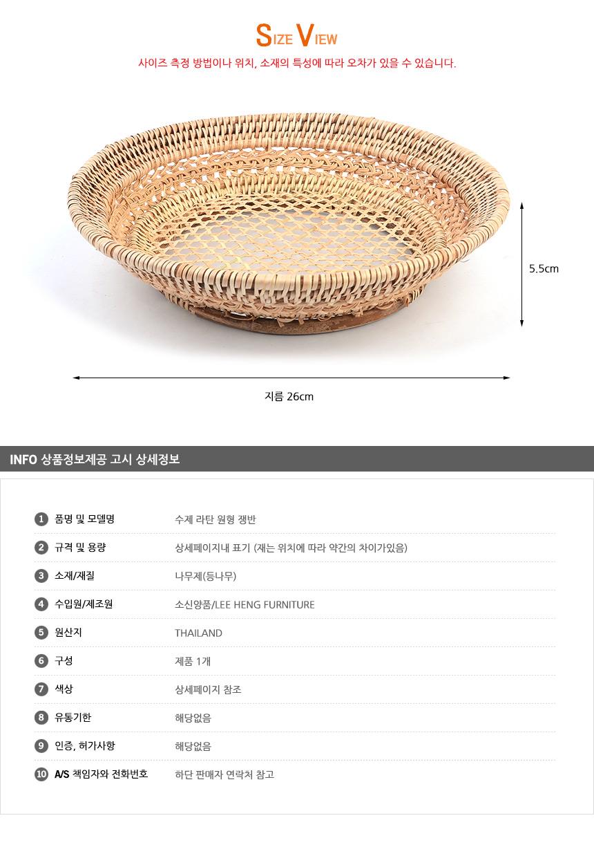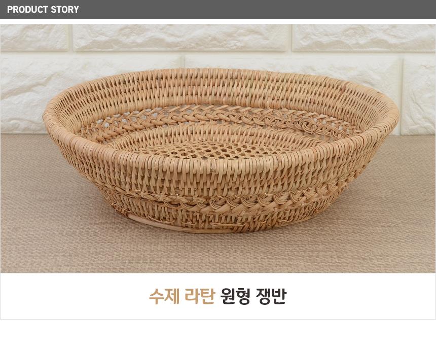 수제 라탄 원형 쟁반 디저트트레이 라탄가구 라탄소품 이미지/