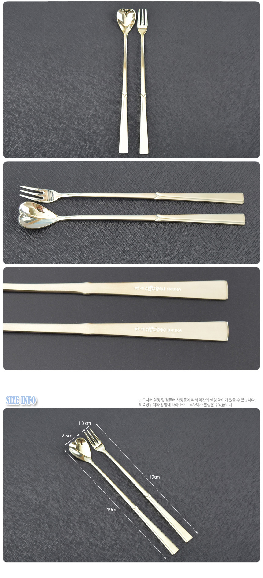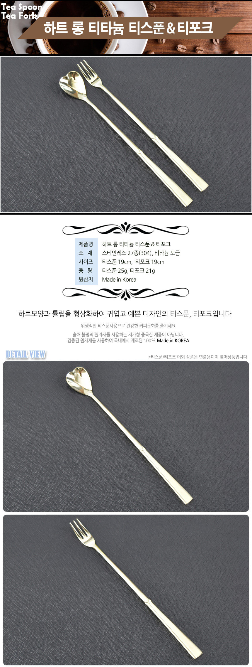 해모 하트 티타늄 롱 티스푼 티포크 이미지/
