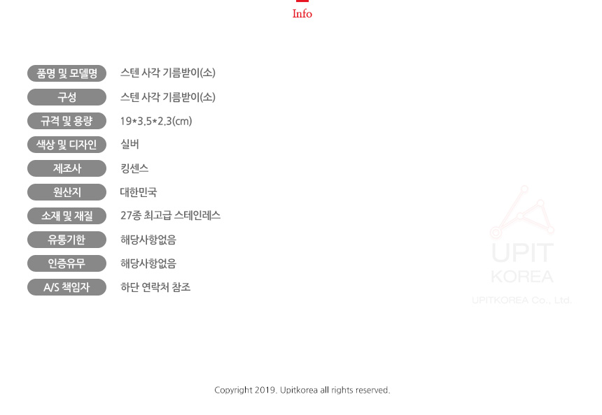 스텐 사각 기름받이(소) 6589 이미지/