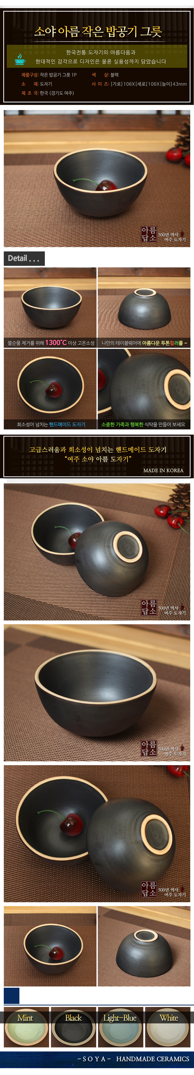 • 품명 및 모델명소야 아름 블랙 작은 밥공기 그릇(밥그릇)