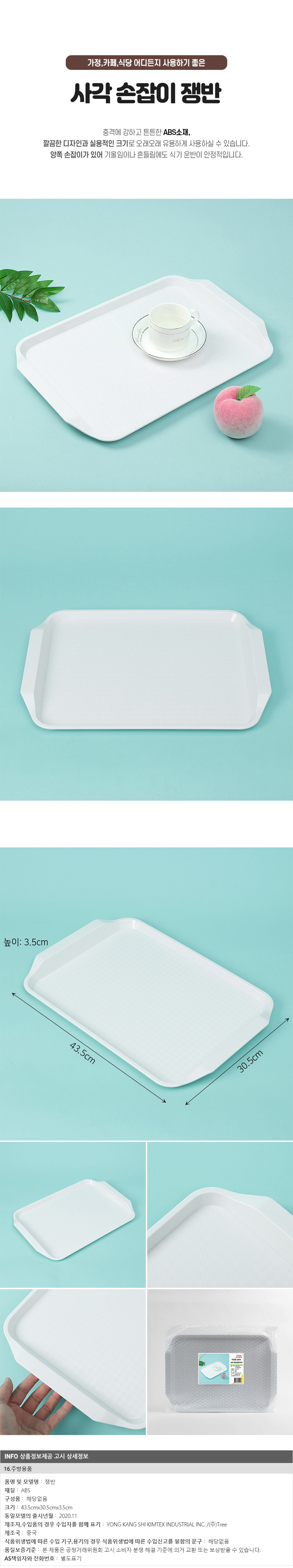 손잡이 사각 쟁반 (화이트) 이미지/