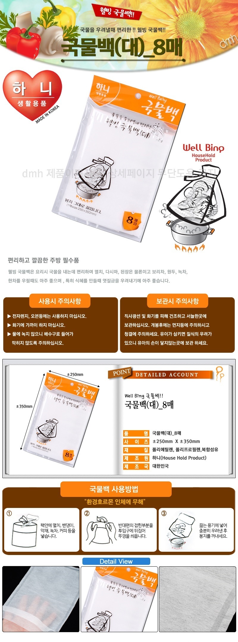 육수 국물백-대(25x35cm) 8매입 망