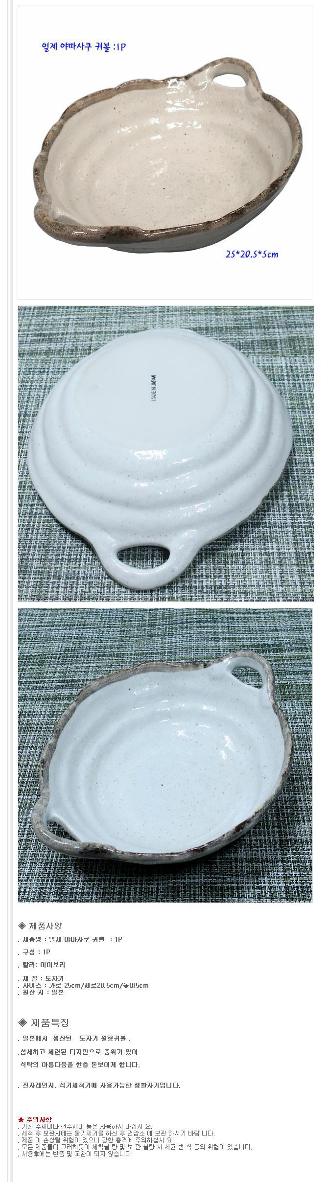야마사쿠 귀볼 20cm 1개 대접 식기 그릇 야채 손잡이 접시 이미지/