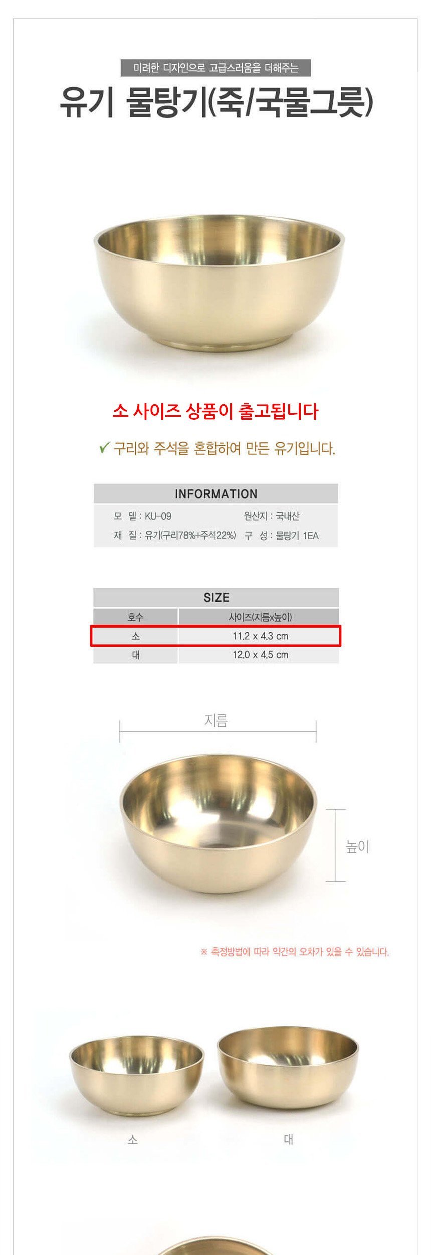방짜유기 다용도 국그릇 소형