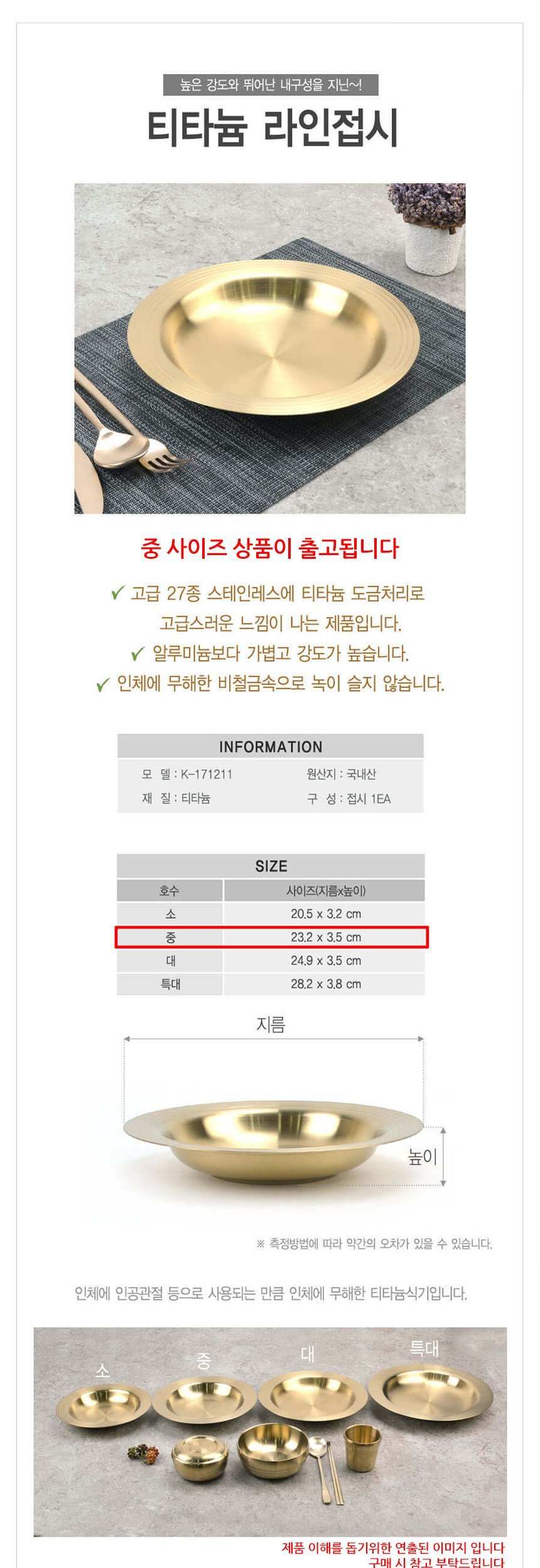티타늄 라인 원형접시 중형 23cm 이미지/