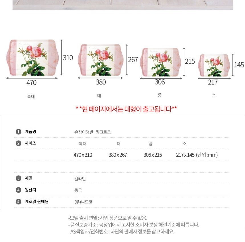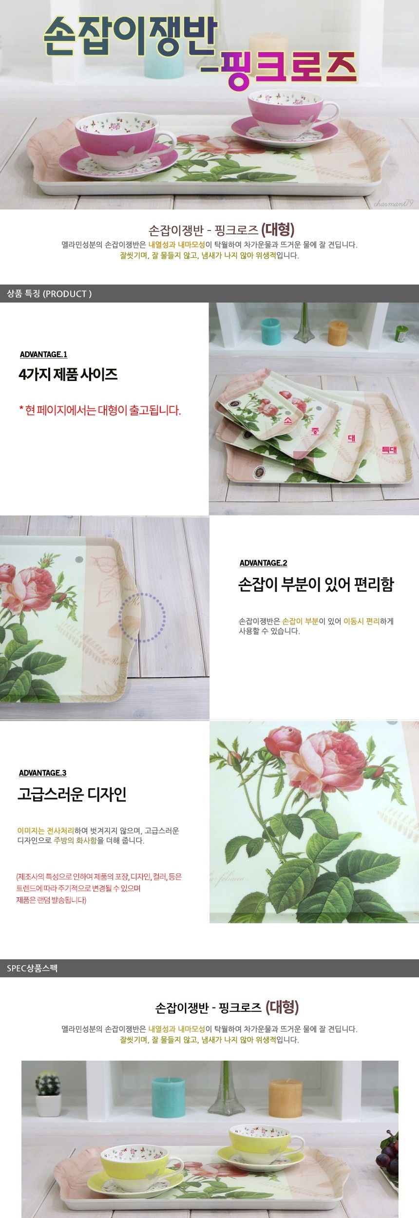니드코 핑크로즈 손잡이 쟁반 대형 이미지/