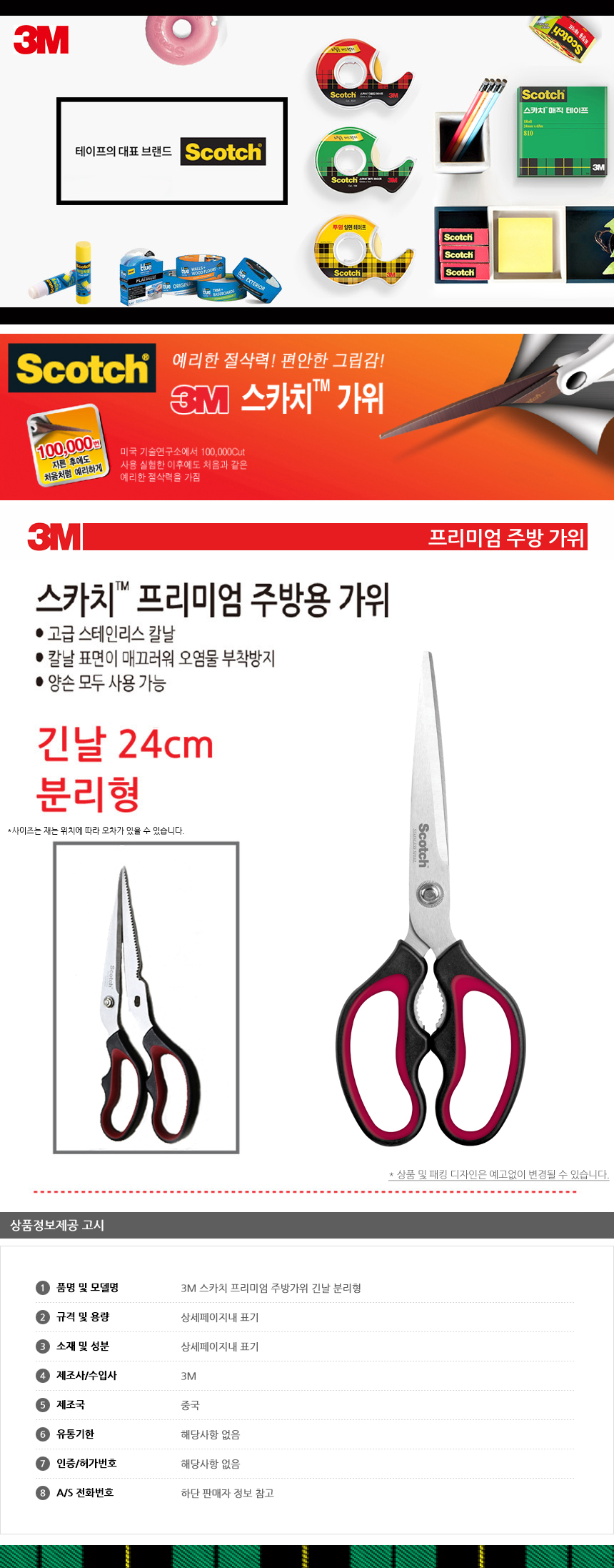 한국쓰리엠 스카치 프리미엄 주방가위 긴날 분리형