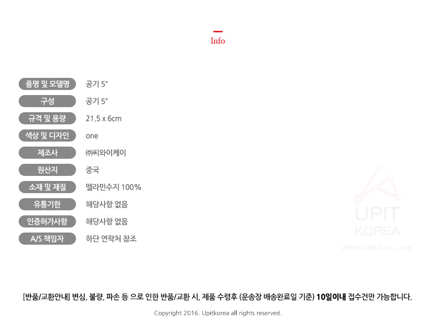 • 반품/환불조건: 도착후 1주일 이내 사용하지 않은 상태에서 가능합니다,초기제품 이상의 경우 동일한 제품으로 1:1 교환원칙, 사용후 제품이상은 A/S를 원칙으로 합니다,