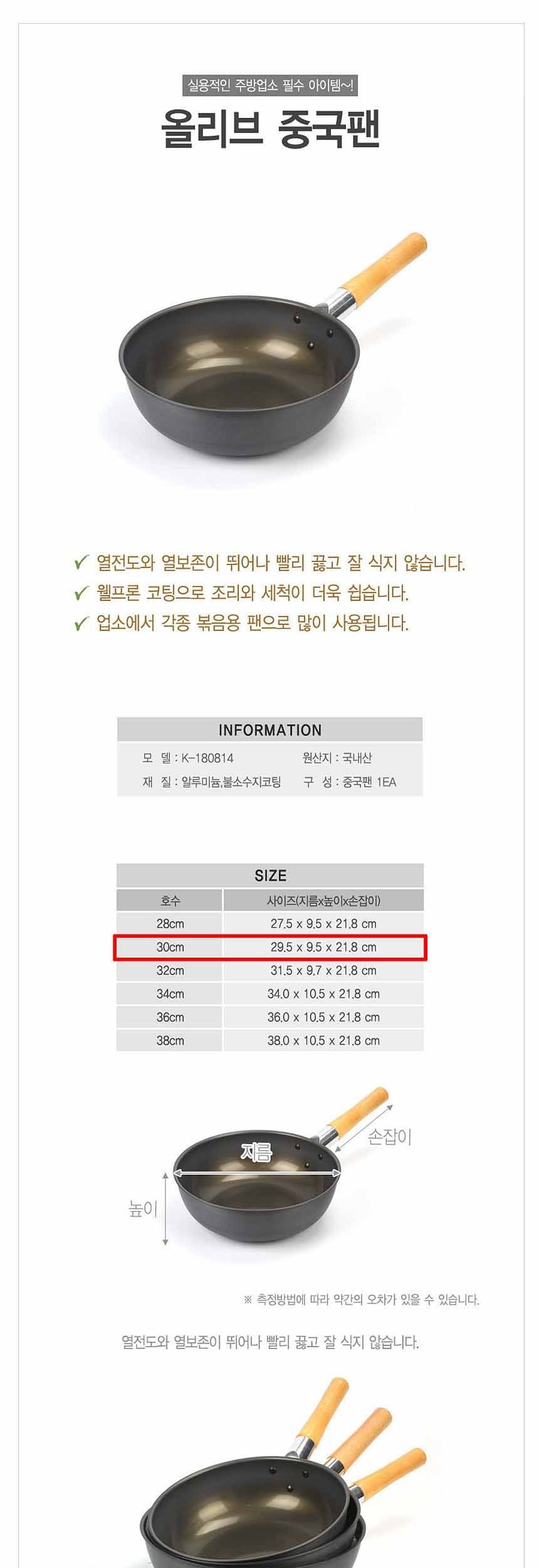 웰프론코팅 올리브 중국팬 궁중팬 30cm 이미지/
