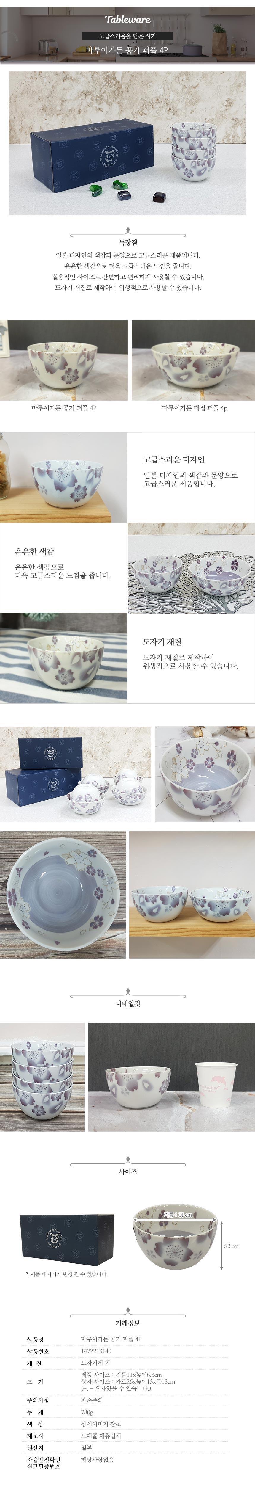공기 퍼플 4P 밥공기 국대접 밥그릇 그릇 주방용품