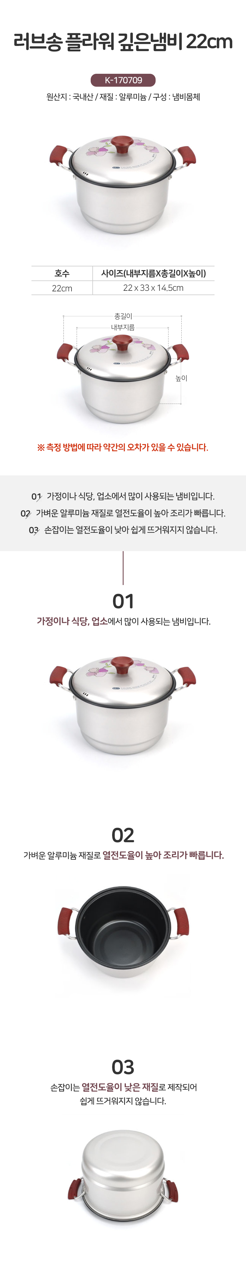 플라워 깊은냄비 22cm 전골 깊은 국냄비 찌개