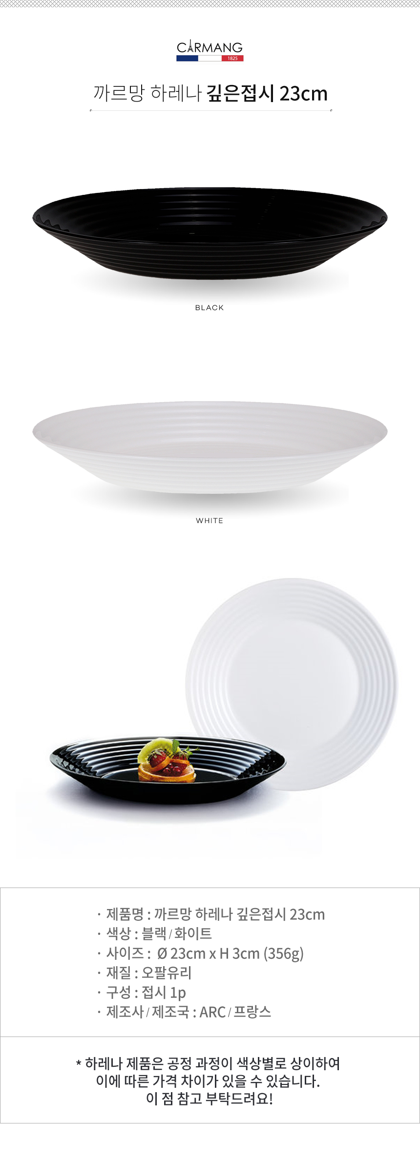 까르망 하레나 식기 깊은접시 화이트 블랙 23cm 프랑스 수입 예쁜접시