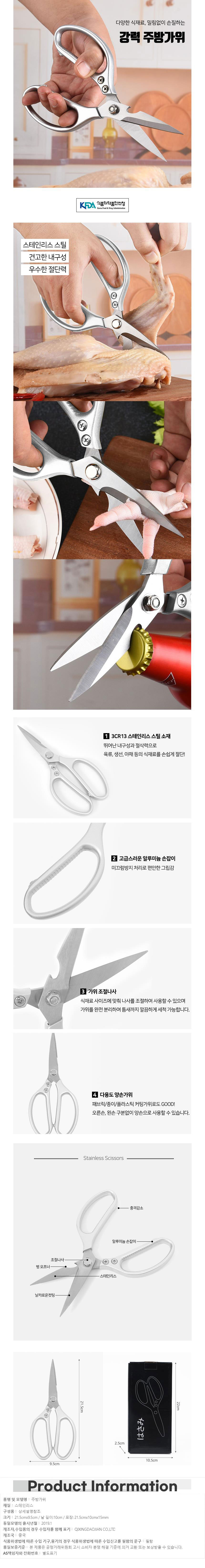 재료손질 컷팅 양손 주방가위 실버 고기가위 캠핑가위