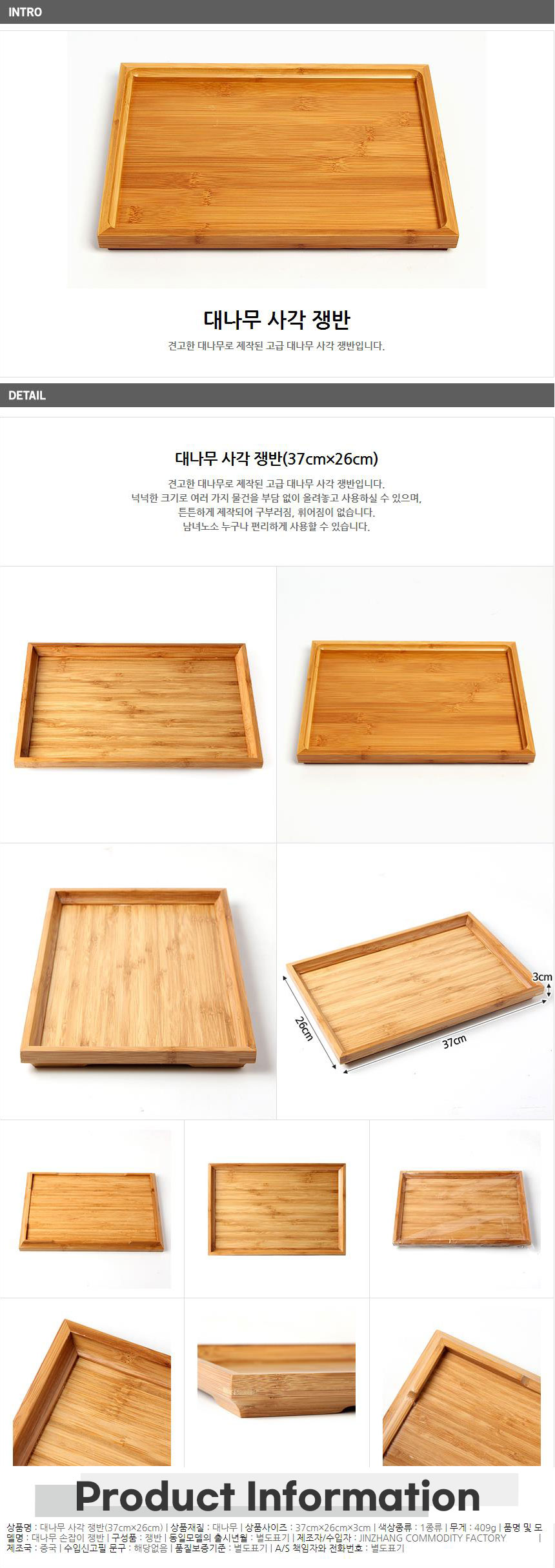 카페트레이 대나무 사각쟁반 37x26cm 우드주방용품 이미지/