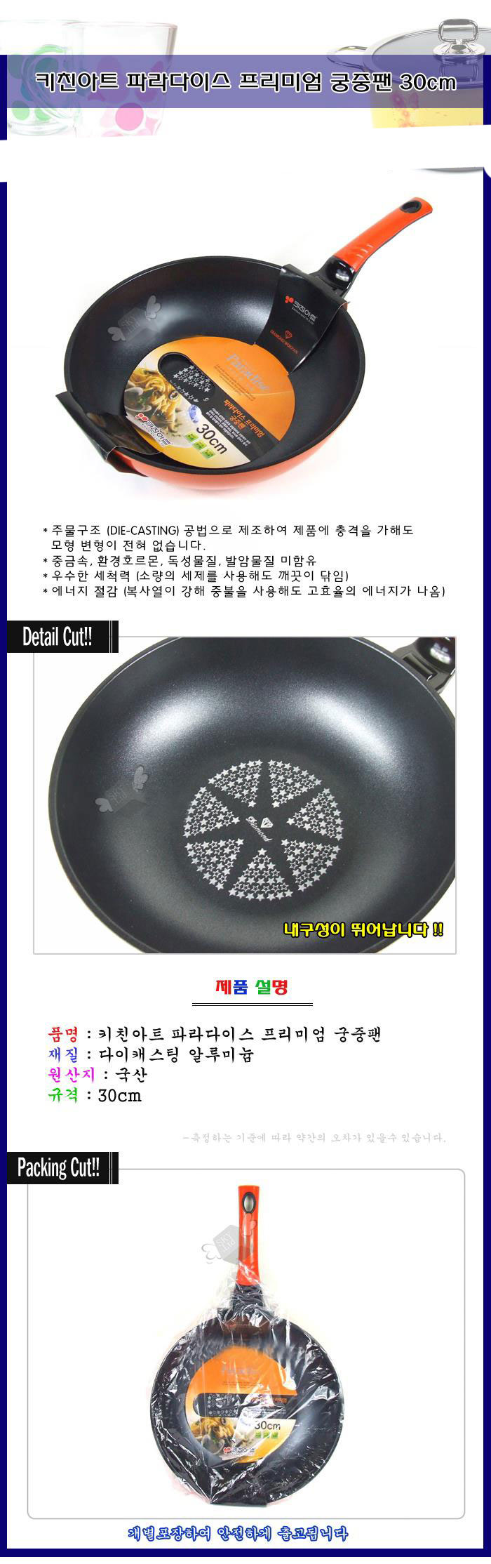 파라다이스 궁중팬 30cm 웍후라이팬 가정용후라이팬