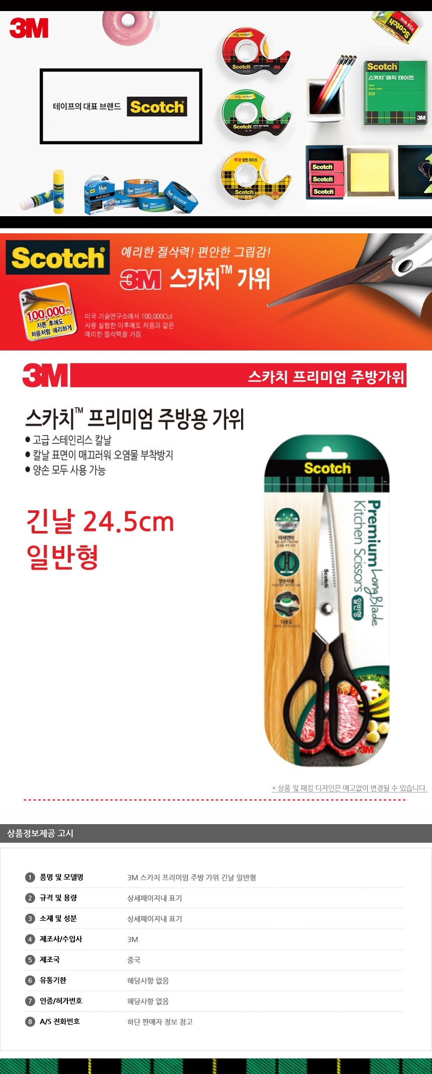 한국쓰리엠 스카치 프리미엄 주방 가위 긴날 일반형