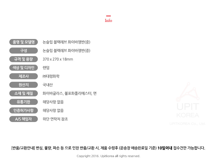 • 초기제품 이상의 경우 동일한 제품으로 1:1 교환원칙, 사용후 제품이상은 A/S를 원칙으로 합니다.