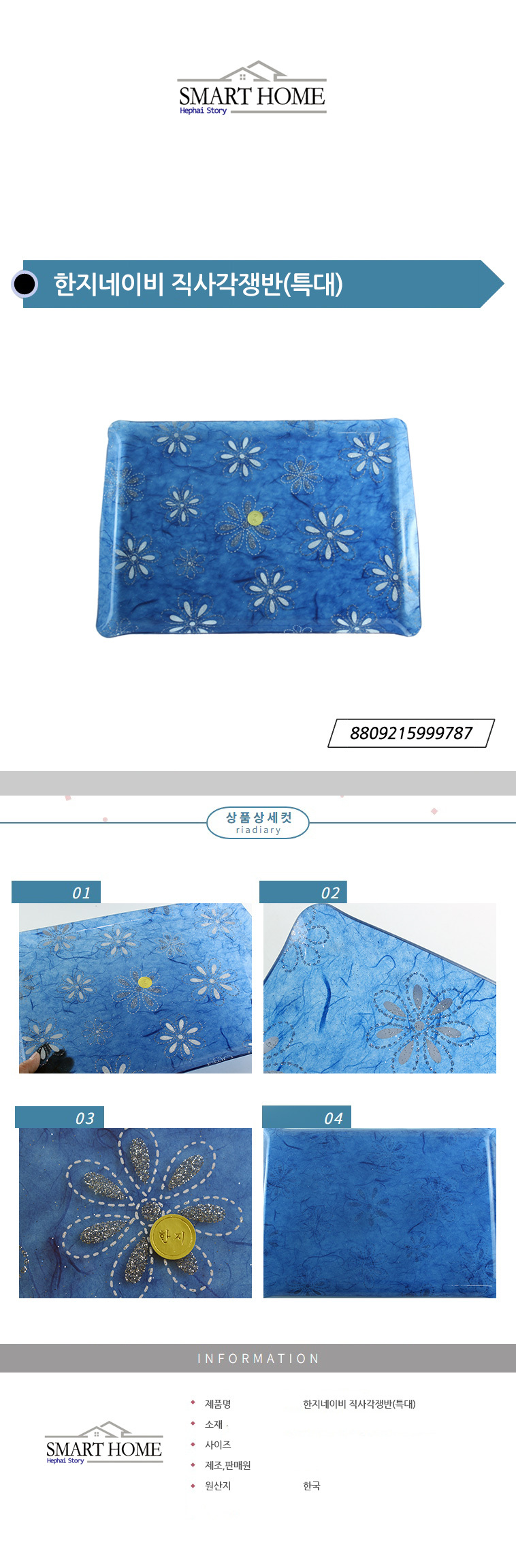 한지네이비 직사각쟁반(특대) 이미지/