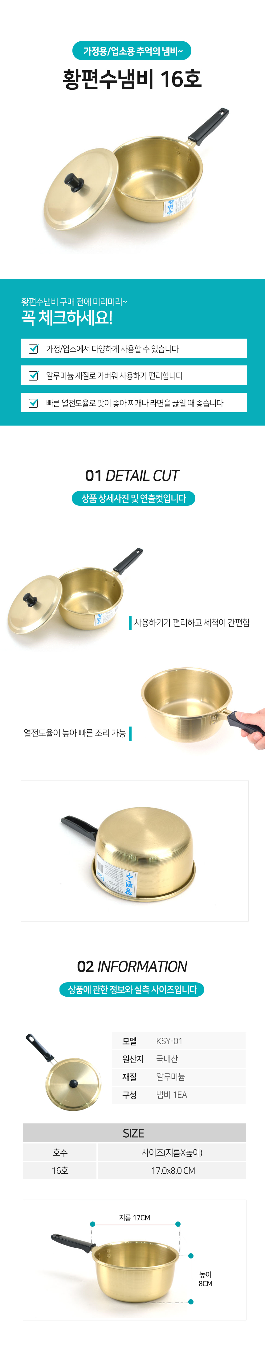 황 편수 냄비 16호 노란 라면 양은 찌개 요리 가정식
