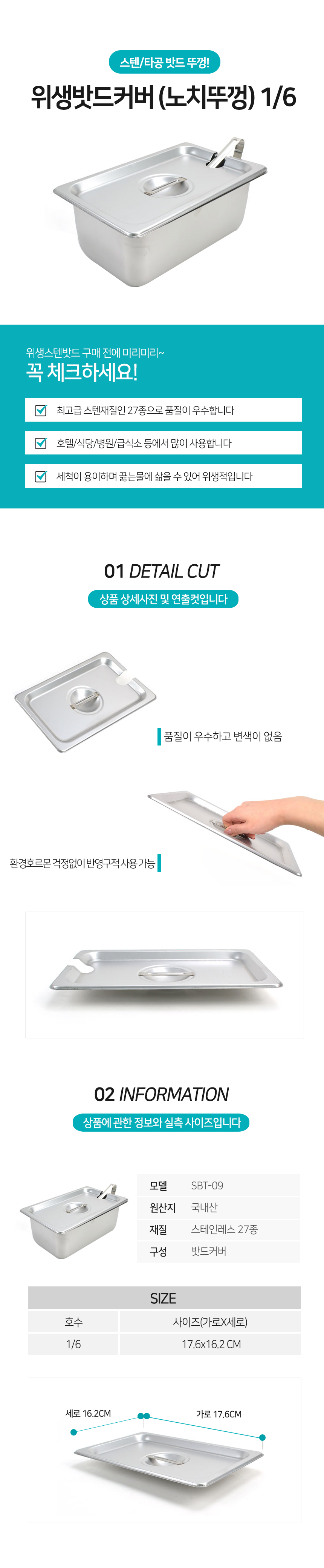 밧드 커버 노치뚜껑 1/6 바트 위생 배식 밧트 용기 이미지/