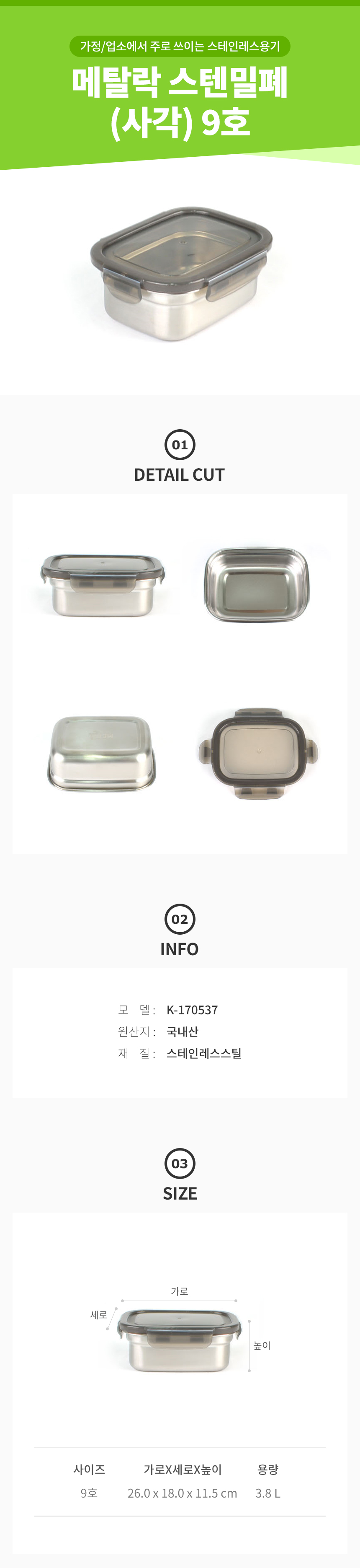 스텐 밀폐 사각 9호 스테인레스 저장용기 김치통 이미지/